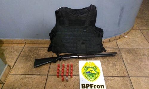 Na noite de ontem (12), Policiais Militares do BPFron - Batalhão de Polícia de Fronteira, durante a Operação Coesão I, realizavam patrulhamento na cidade de Nova Santa Rosa quando abordaram um veículo Vectra de cor azul ocupado por 4 indivíduos. Durante revista veicular foram localizados uma espingarda Gauge calibre 12, duas placas balísticas além de 18 munições Gauge 12. Um dos abordados disse ser o dono dos ilícitos, sendo que na data de hoje teria ido buscá-los na cidade de Terra Roxa e teria pago a quantia de R$3.000,00 nos ilícitos. Diante dos fatos os indivíduos, munições, arma, colete balístico e veículo foram encaminhados para as providências cabíveis.
