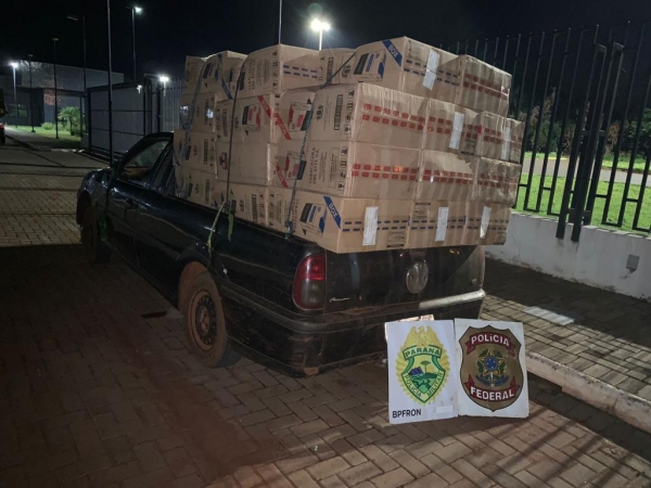 Foi constatado que o veículo estava carregado com cigarro de origem paraguaia. Dessa maneira uma Saveiro e cerca de 50 caixas de cigarro foram apreendidas.