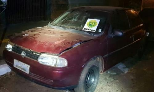 No final da noite de ontem, 10.06.18, Policiais Militares do BPFron - Batalhão de Polícia de Fronteira realizavam patrulhamento em Oliveira Castro, na cidade de Guaíra - PR quando avistaram indivíduos em frente a uma residência. Com a aproximação dos Policiais Militares os indivíduos empreenderam fuga sendo um deles abordado. Ele era morador da residência. Nada de ilícito foi encontrado durante busca pessoal, porém ao realizar verificação de um veículo que se encontrava no local foi constatado que o VW gol vermelho era produto de um furto ocorrido em Paranaguá - PR no final do ano passado. O indivíduo informou que teria comprado o veículo pela quantia de dois mil reais. Ele foi preso e encaminhado juntamente do veículo para os procedimentos legais cabíveis.