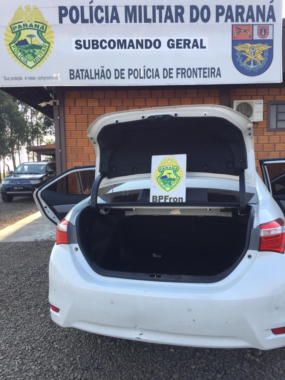 Nesta terça-feira (20), Policiais Militares do BPFRON em diligências no município de Pato Bragado, em um local onde conforme que se tinha informações ter conexão com a prática de ilícitos, após averiguações localizou-se no endereço um veículo Toyota Corola com placas de Marechal Rondon.