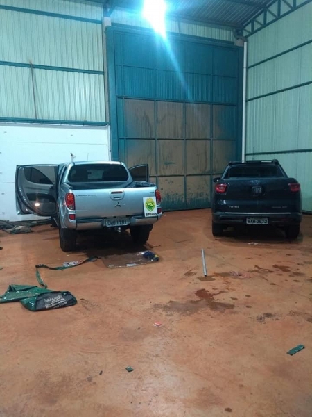 Dando continuidade a verificação, constataram que a porta do galpão estava aberta e ao entrarem localizaram 02 veículos mas nenhum ocupante.