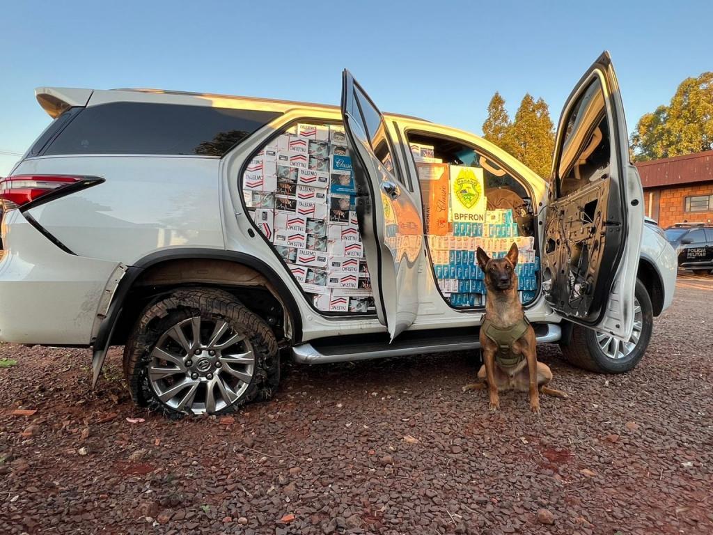Foi constatado que o veículo era produto de furto e estava carregado de cigarro de origem estrangeira.