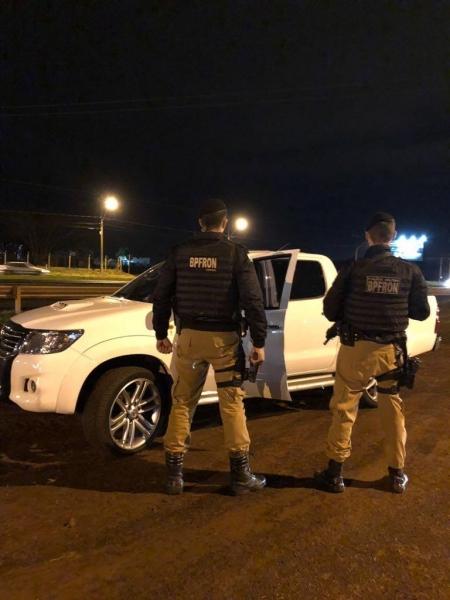Na noite de ontem (14), Policiais Militares do BPFron - Batalhão de Polícia de Fronteira através da ROCAM - Rondas Ostensivas com Aplicação de Motocicletas realizavam patrulhamento no Bairro Jardim Nacional na cidade de Foz do Iguaçu quando avistaram uma camionete Hilux, de cor Branca, transitando na via.