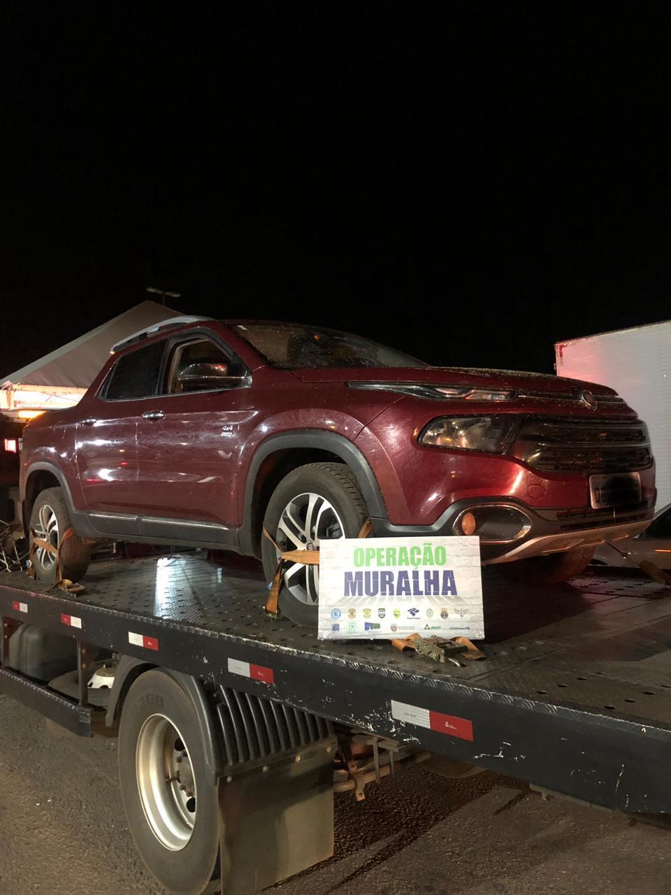 No âmbito da operação muralha, Militares Estaduais do BPFRON deram ordem de parada a um Fiat toro de cor vermelho escuro, placas de Cuiaba-MT, o qual desrespeitou e empreendeu fuga sentido Mato Grosso do Sul, colocando em risco os demais agentes de segurança que ali estavam.