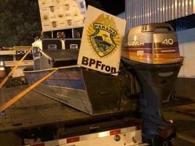 Na embarcação de sete metros, euqilada com motor 40 HP mariner, foram localizados 16 painéis de LED contrabandeados do Paraguai, um prejuízo aos contrabandistas estimado em R$ 70 mil reais somente do material apreendido.