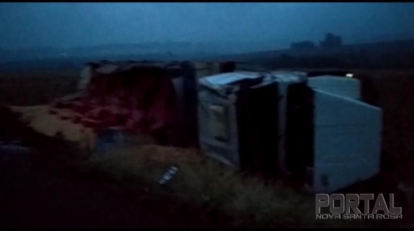 Imagens acabaram de chegar em nossa redação de um caminhão carregado de cigarros, que tudo indica que se perdeu na curva e tombou, o acidente aconteceu no início da manhã desta quinta-feira (26), na Linha São João sentido Toledo em Novo Sarandi.