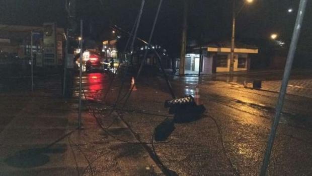 Um caminhão derrubou um semáforo na Avenida Carlos Gomes, cruzamento com a Rua Vitória na região do Ciro Nardi em Cascavel na noite desta quinta-feira (14).