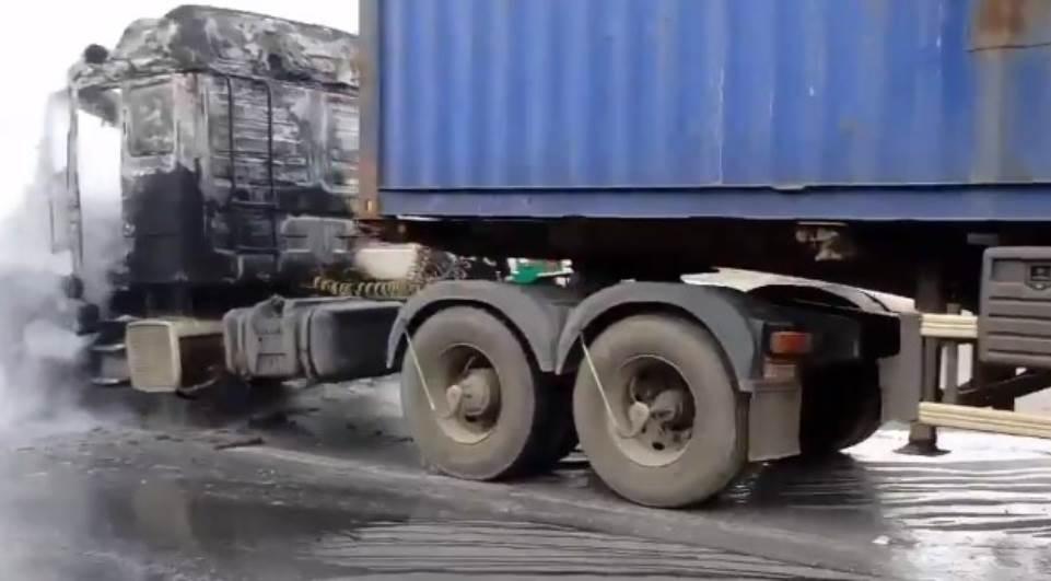 O caminhão foi retirado do meio da pista e colocado no acostamento. Não há informação sobre o motivo do princípio de incêndio.