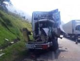 A colisão entre o caminhão e uma carreta aconteceu na rodovia BR-376, no município de Guaratuba (PR), na pista sentido Santa Catarina.