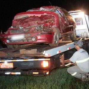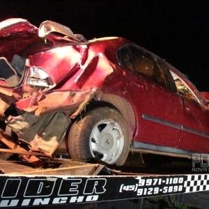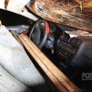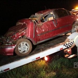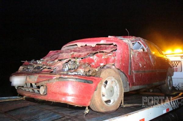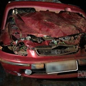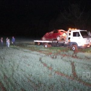 Trata-se de um veículo Honda Civic, com placas CML-2434 de Maripá, cujo condutor seguia sentido à Nova Santa Rosa, quando em determinado trecho, conforme o que pode ser observado no local, acabou perdendo o controle, vindo a capotar o Civic por diversas vezes deixando-o totalmente destruído, o carro foi parar em uma lavoura há aproximadamente 30 metros da rodovia.