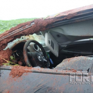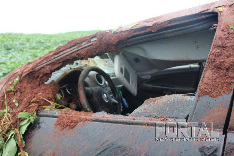 O acidente envolveu um Voyage com placas de Toledo, o qual era ocupado por três pessoas, uma senhora de 74 anos, uma de 50 anos e uma criança de 11 anos, moradoras da cidade de Céu azul, eles faziam o trajeto Palotina a Toledo.