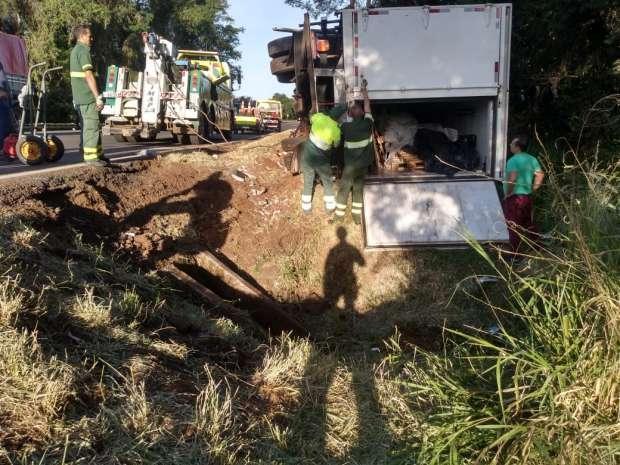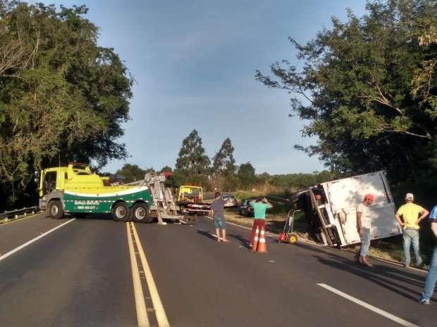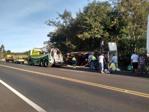 O caminhão foi destombado na parte da tarde pelas equipes da Polícia Rodoviária Federal.