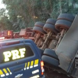 Foi registrado no final da tarde desta quarta-feira (27), às margens da BR163 que liga a cidade de Marechal Cândido Rondon à Mercedes, um tombamento de carreta, com placas do Pará e que transportava uma carga de farinha.