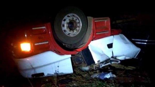 Uma carreta tombou na PR 486 na noite desta terça-feira (21) nas proximidades do distrito de Jotaesse.