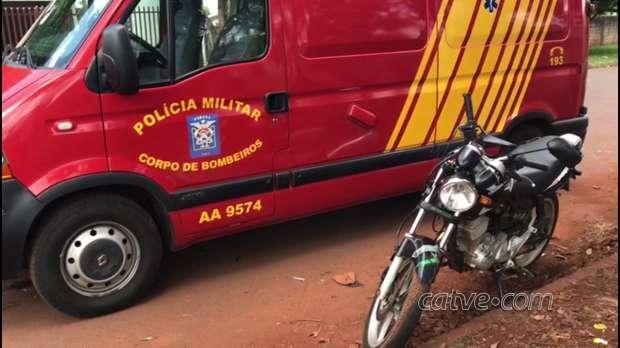 Após a colisão, o condutor da moto sofreu uma queda e ainda atingiu uma pedestre que estava na calçada.