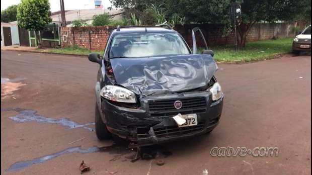 Duas pessoas ficaram feridas em um acidente de trânsito na tarde desta quarta-feira (7), no Bairro Brasmadeira, em Cascavel. A batida, entre uma Fiat Strada e uma Honda CG, aconteceu na esquina das ruas Osvaldo Dall Oglio e Tabajaras.