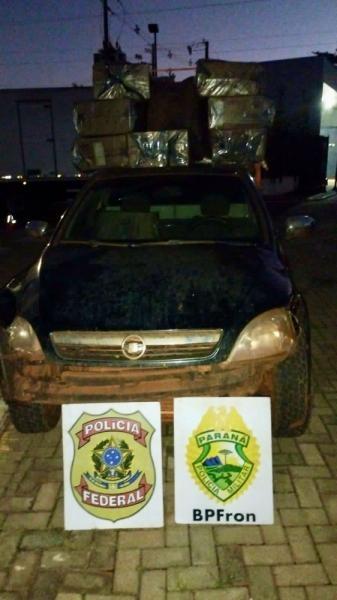 No interior do veículo, constatou-se que estava carregado com aproximadamente 1.750 pacotes de cigarros contrabandeados do Paraguai.