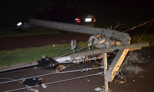 A colisão contra um poste foi registrado por volta das 21h40 de hoje (28) no Parque do Povo região do Jardim Planalto, envolveu o Vectra placas AEJ 0900 de Cascavel, conduzido por Eder Luiz Brancher, o Vectra trafegava por uma das vias do Parque do Povo quando o motorista perdeu o controle atingiu um poste, que suportava um transformador derrubando, os bombeiros foram acionados mas não teve vítima, a Guarda Municipal e a Polícia Militar também estiveram no local juntamente com a Copel para os procedimentos cabíveis