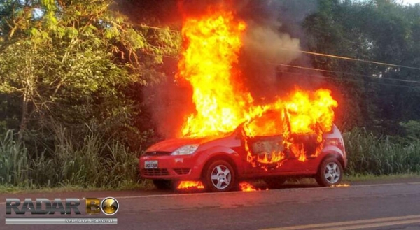 Um Ford Fiesta foi destruído pelo fogo no inicio da manhã de hoje (17), na rodovia PR 317, trecho que liga Toledo a Assis Chateaubriand, após o campo de Golf de Toledo. Usuários da rodovia que passavam pelo local, flagraram o incêndio. O Corpo de Bombeiros foi acionado para deslocar até o local e combater as chamas.. Não se sabe ao certo as causas do incêndio ainda.