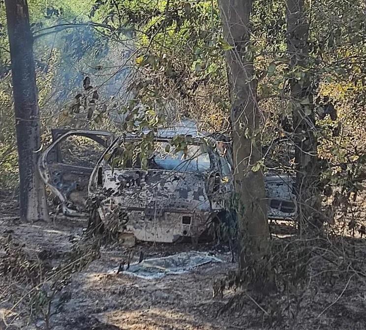 Ao chegar no local, a equipe dos bombeiros encontrou o veículo já tomado pelo fogo. As marcas no solo indicam que o carro saiu da estrada de terra, passou entre um poste e uma árvore, até parar no ponto onde as chamas se espalharam.