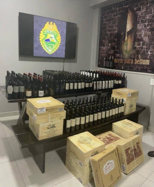 Policiais militares do Pelotão de Choque de Cascavel apreenderam nesta madrugada um veículo carregado com cerca de 400 garrafas de vinho contrabandeados da Argentina.