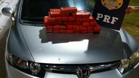 Por volta das 23 horas do domingo (29), policiais rodoviários federais de Santa Terezinha de Itaipu abordaram um veículo Honda Civic transportando maconha.