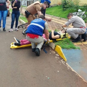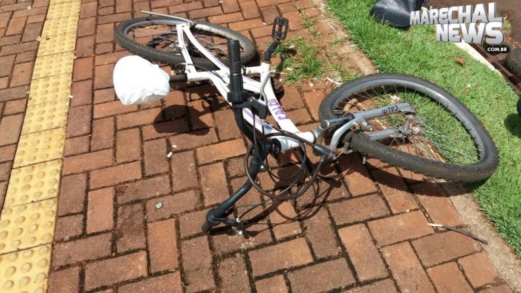 Na colisão envolveram-se um veículo Gol, com placas de Marechal Cândido Rondon e uma bicicleta.
