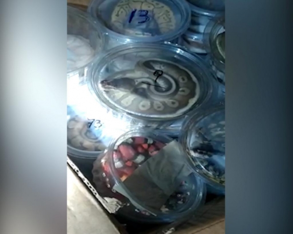Ao revistarem o bagageiro, encontraram numa mala, dentro de potes sem furos de ventilação e sacos 49 filhotes de cobras e 20 tartarugas sendo transportadas sem nenhuma documentação por um homem que saiu do Brasil para comprá-las no país vizinho e as levaria para São Paulo (SP).