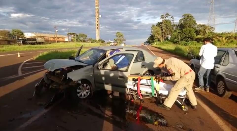 Segundo informações repassadas no local o veículo Clio seguia sentindo Cascavel quando foi atingido por um caminhão que fazia o corto na rodovia. A condutora do carro ficou ferida.