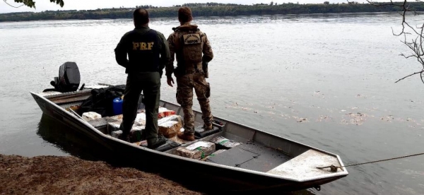 A PRF e a Polícia Federal apreenderam 376,5 kg de maconha no Rio Paraná. A droga estava em uma embarcação, localizada no Parque Nacional de Ilha Grande, região próxima a prainha da Amizade, em Itaquiraí-MS.