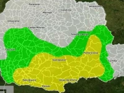 Segundo os meteorologistas do Simepar, uma geada intensa atinge as regiões de Guarapuava, Telêmaco Borba, União da Vitória, Cascavel, Pato Branco, Francisco Beltrão, Palmas e Ponta Grossa.