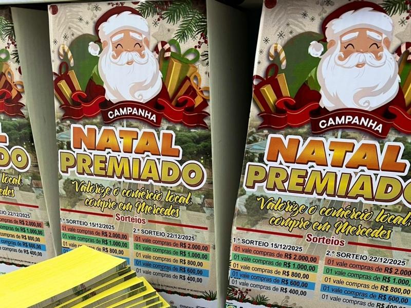 A Associação Comercial e Empresarial de Mercedes (ACIM), em parceria com a Prefeitura Municipal, lança a campanha Natal Premiado 2025, que promete agitar o comércio local neste fim de ano com vale-compras que chegam a R$ 2.000,00.