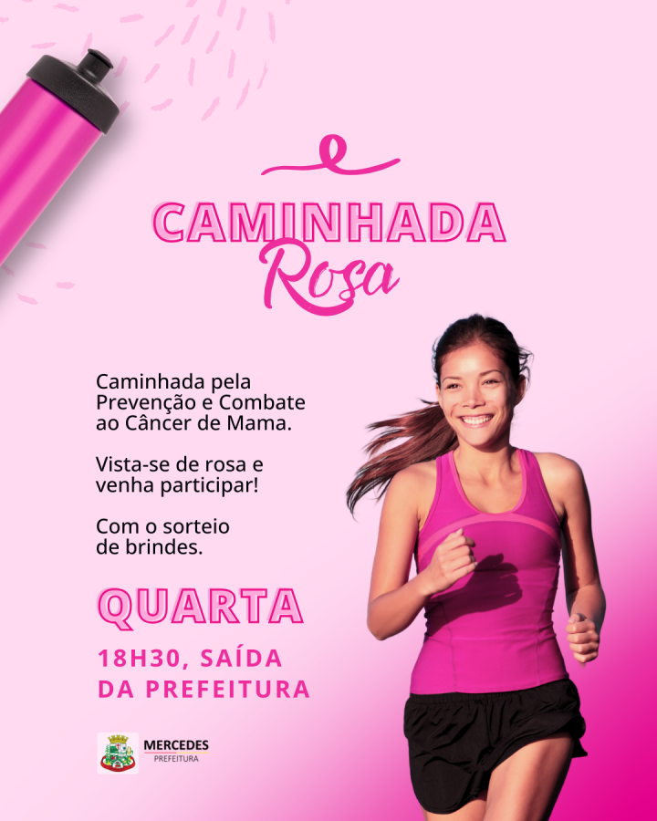 A Secretaria de Saúde de Mercedes realizará, nesta quarta-feira (29), a Caminhada Rosa, evento que busca conscientizar a comunidade sobre a importância da prevenção e do diagnóstico precoce do câncer de mama. A atividade terá início às 18h30, em frente ao Paço Municipal.