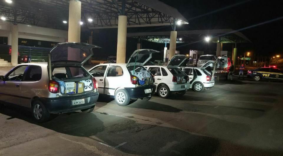 Três carros, carregados com pneus contrabandeados do Paraguai, foram apreendidos na altura do Km 1 da BR-163, na Ponte Ayrton Senna, em Guaíra, na noite de terça-feira (30). Os veículos vinham em comboio, e quando viram uma viatura da Polícia Rodoviária Federal (PRF) transitando no sentido oposto, fizeram o retorno e saíram em alta velocidade, em direção à um porto.