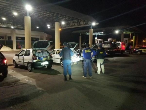 As Equipes Policia Rodoviária Federal (PRF) e Receita Federal, atuando em conjunto, apreenderam na noite de terça-feira, um comboio de três veículos carregados de pneus tentando entrar irregularmente no Brasil através da Ponte Ayrton Senna.