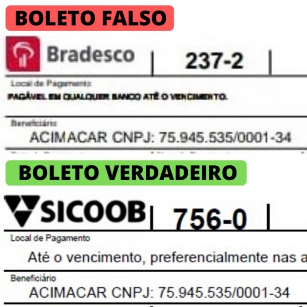 A Associação Comercial e Empresarial de Marechal Cândido Rondon (Acimacar) informa a seus associados que foram emitidos boletos falsos em nome da entidade.