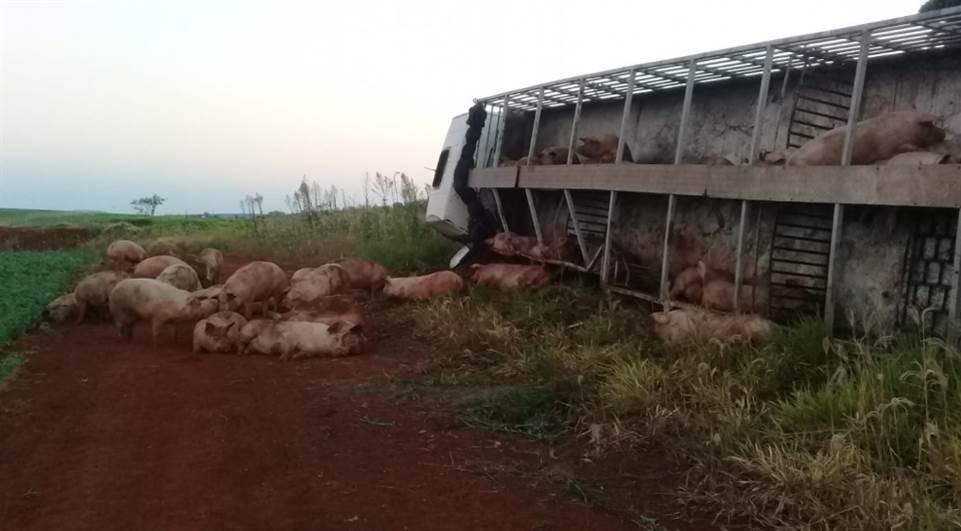 Segundo informações coletadas no local, o condutor do caminhão vinha de Santa Catarina, quando em cerca de 5 km da BR 467, perdeu o controle do veículo e tombou na pista contrária. O veículo carregava aproximadamente 100 suínos, que seriam descarregados em Toledo.