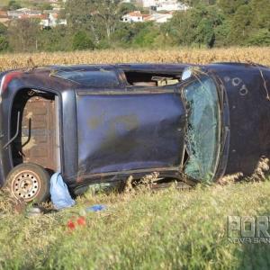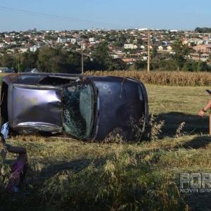 O capotamento aconteceu quando o homem trafegava pela via e próximo cruzamento com a Rua Capitão Leônidas Marques, ele perdeu o controle de direção, bateu no monte de terra e em seguida capotou, parando dentro de uma lavoura.