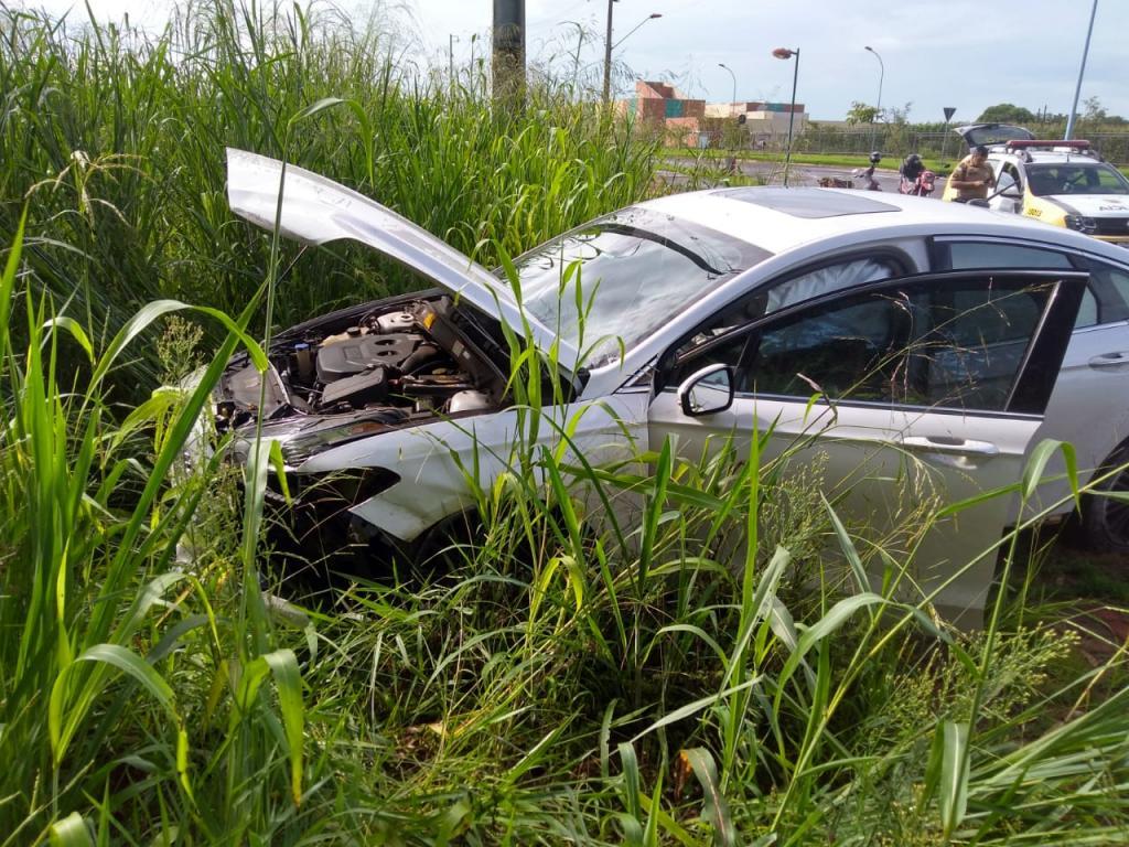 O acidente aconteceu quando o veículo trafegava pela Avenida e ao chegar na rotatória, existente no local, o condutor perdeu o controle e atingiu o muro.