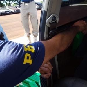 Durante vistoria ao automóvel, os agentes encontraram 63 tabletes de maconha escondidos sob o banco traseiro, nas laterais das portas e no compartimento do estepe do veículo.