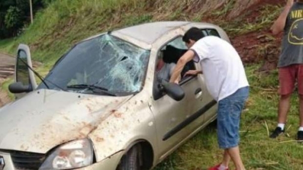 Condutor se perde em curva e capota Clio na BR 277, em Matelândia