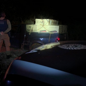 No local foram apreendidos uma embarcação de alumínio com motor Mercury 40hp e 01 pick-up Montana carregados com aproximadamente 30 caixas de cigarros contrabandeados do Paraguai, um prejuízo de aproximadamente R$95 mil à quadrilha criminosa.