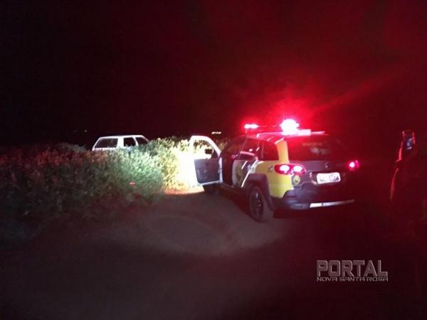 Diante disso a equipe de imediato tentou abordar os veículos, sendo que os mesmos saíram em alta velocidade sentido saída de Assis Chateaubriand. Foi realizado acompanhamento tático a um Fiat/Uno de cor branca placas: DTU-3610 que após a entrada do Santuário da Salete adentrou uma plantação de soja e o motorista fugiu agachando em meio a plantação. A equipe após isso verificou que no Fiat haveriam diversos pacotes de inseticida de marca "Differ" com peso de 1kg cada pacote, não sendo possível de imediato efetuar a contagem de quanto pacotes existiam.