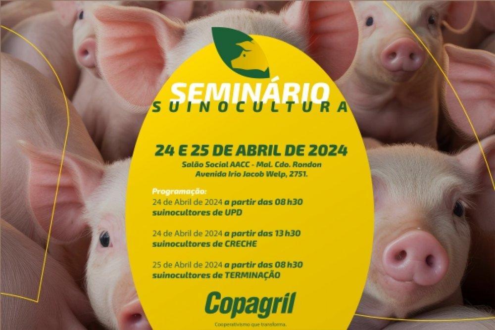 A Cooperativa Agroindustrial Copagril realizará, nos dias 24 e 25 de abril, o evento: Seminário de Suinocultura 2024, que terá por local o Salão Social da Associação Atlética Cultural Copagril (AACC), em Marechal Cândido Rondon.