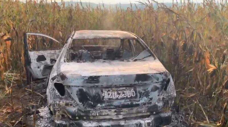 Um corpo carbonizado foi encontrado no porta-malas do carro incendiado próximo a PR 486, área rural, em Cascavel, na manhã de quinta-feira (27).