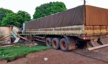 A carreta, carregada com cerca de 30 toneladas de soja, invadiu um bar e parte de uma casa, onde a vítima estava.