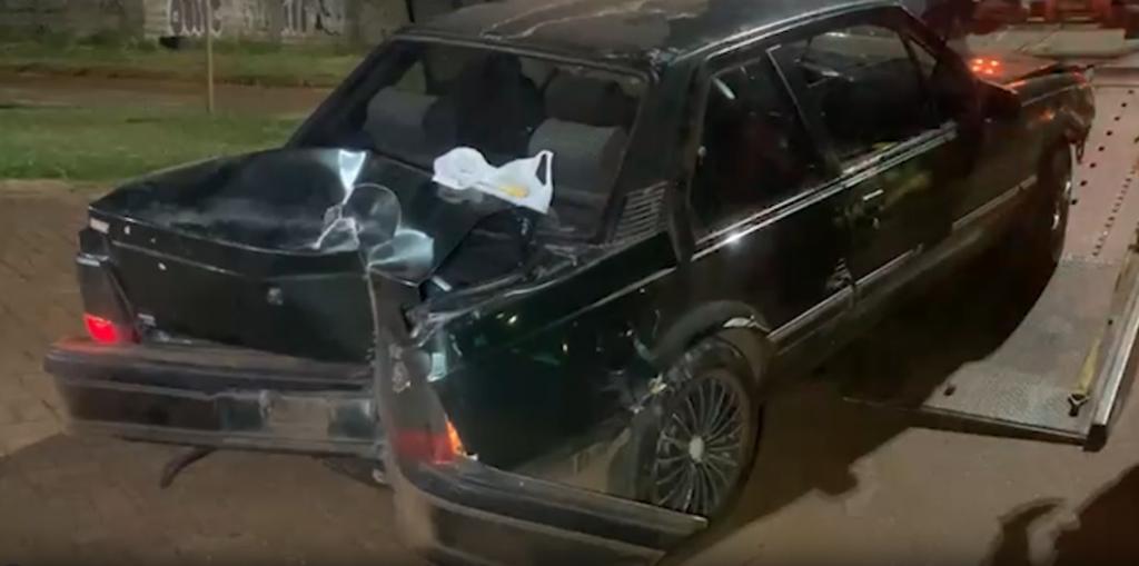 O carro foi guinchado e estava bastante danificado. O homem, de 50 anos, foi detido e conduzido para a Delegacia de Polícia Civil junto com o adolescente.