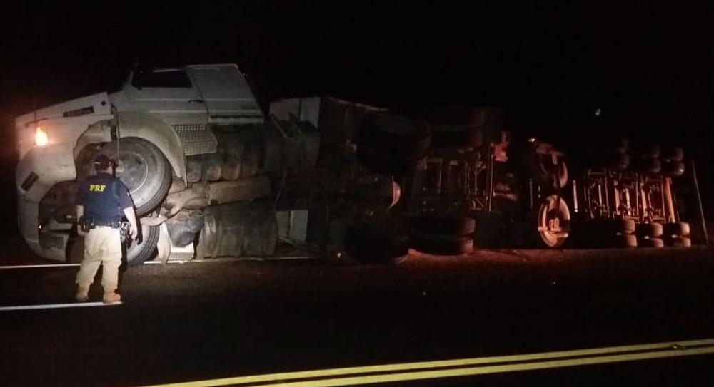 Um caminhoneiro de 54 anos ficou levemente ferido depois de tombar o caminhão que dirigia no quilômetro 185 da BR-373, em Ponta Grossa, nos Campos Gerais do Paraná, por volta das 20h50 de segunda-feira (16).