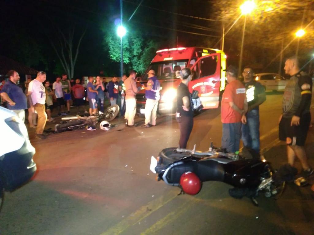 Um acidente foi registrado por volta das 20h10 desta terça-feira (08), na Avenida Egídio Geronymo Munaretto, na saída de Toledo para São Pedro do Iguaçu, em frente ao ginásio de esportes da Sadia, envolveu duas motos, sendo uma Yamaha Fazer 250 cilindradas, placa AVZ 5B 82 Brasil e a outra moto também uma Yamaha Fazer 125 cilindradas, placa AMH 9921 de Toledo.