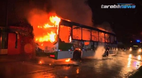 No bairro Santa Cruz, os bandidos em um veículo Uno, abordaram o ônibus, pediram para que os ocupantes descessem e espalharam combustível e atearam fogo. Um tiro foi efetuado no interior do coletivo.